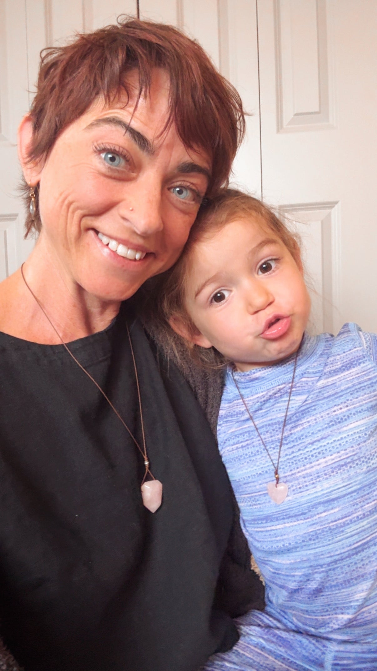 This rose quartz heart gift set was created to honor the bond between two hearts connected through care. Each necklace carries a rose quartz heart, worn near the heart as a gentle reminder of love, tenderness, and connection.